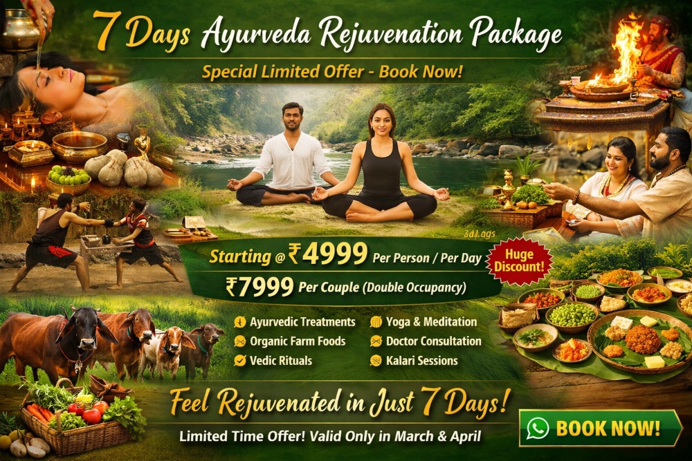 This discounted Ayurveda package is available only for March and April. Limited slots available. Book your healing retreat now.
